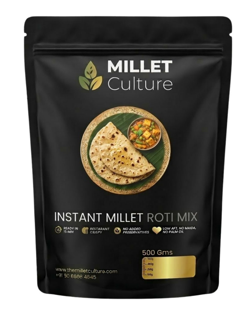 Upgrade your everyday meals with our Multi-Millet Atta. Finely milled for smooth texture and perfect binding, this flour ensures soft, easy-to-roll rotis and phulkas packed with nutrition.